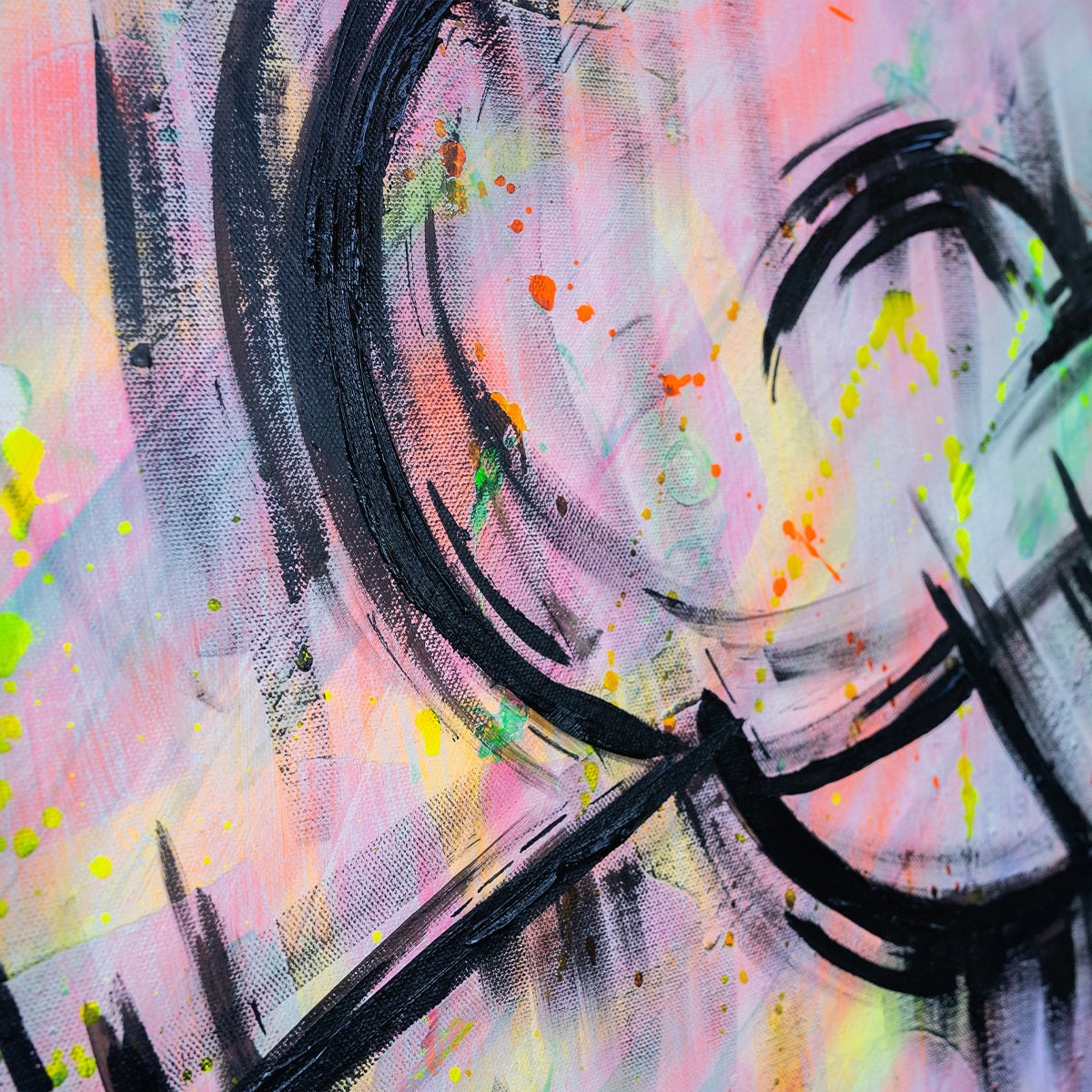 This artwork features a bold dollar sign, outlined in black, set against a soft pink background. The contrast between the dark outline and the light pink creates a striking visual impact, emphasizing the symbol of wealth and ambition. The simplicity of the design, with its clean lines and vibrant backdrop, makes Symbol of Desire a powerful statement about the allure of money and the desire it generates. The artwork plays with the tension between simplicity and symbolism, creating a sense of both elegance and yearning.