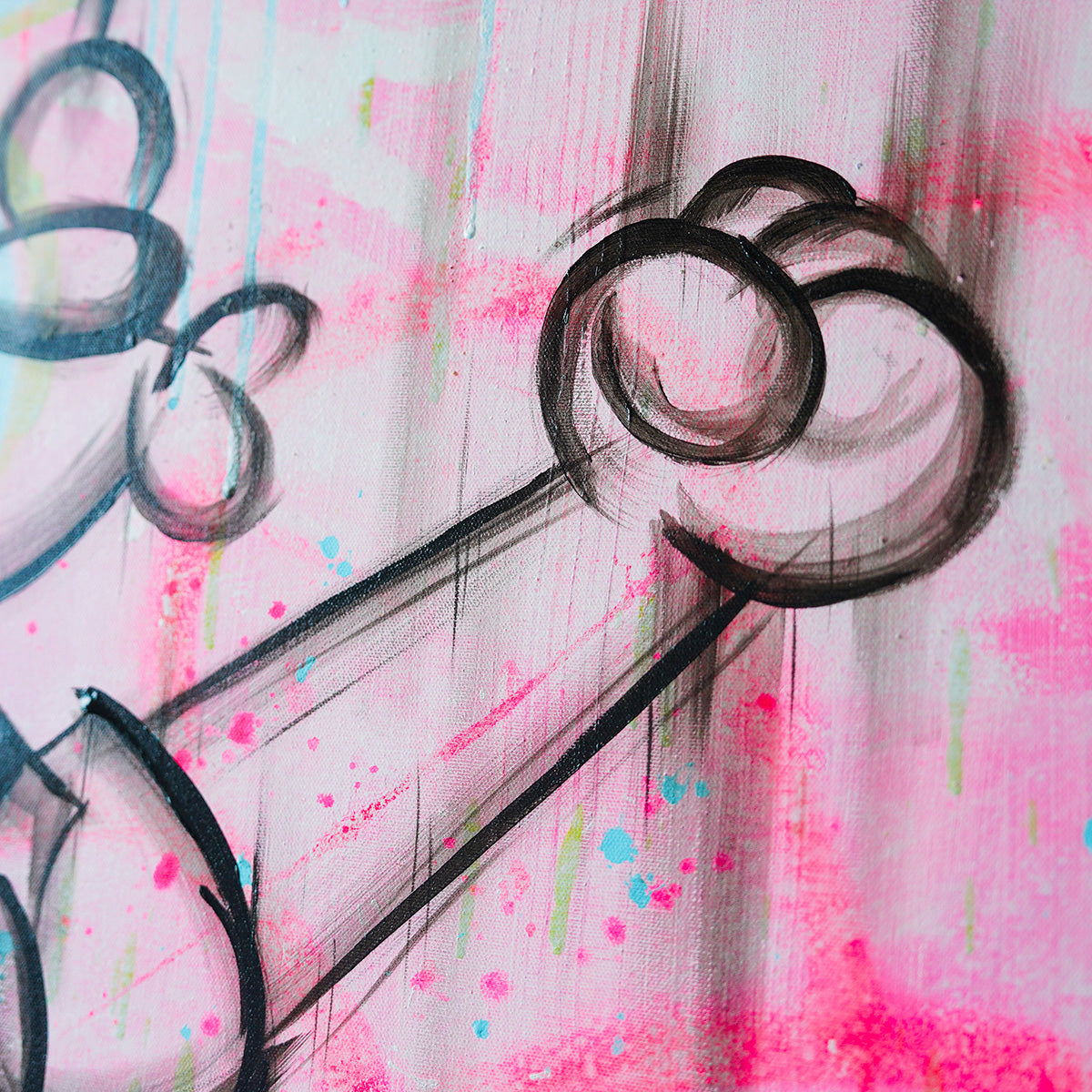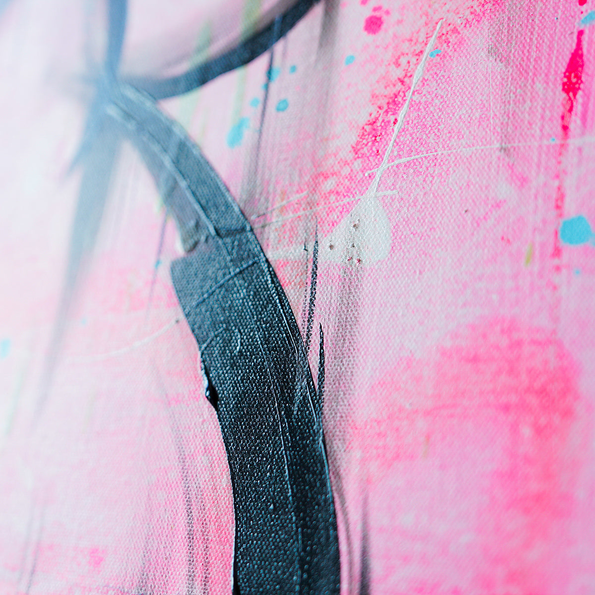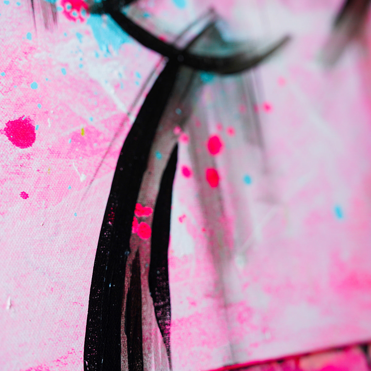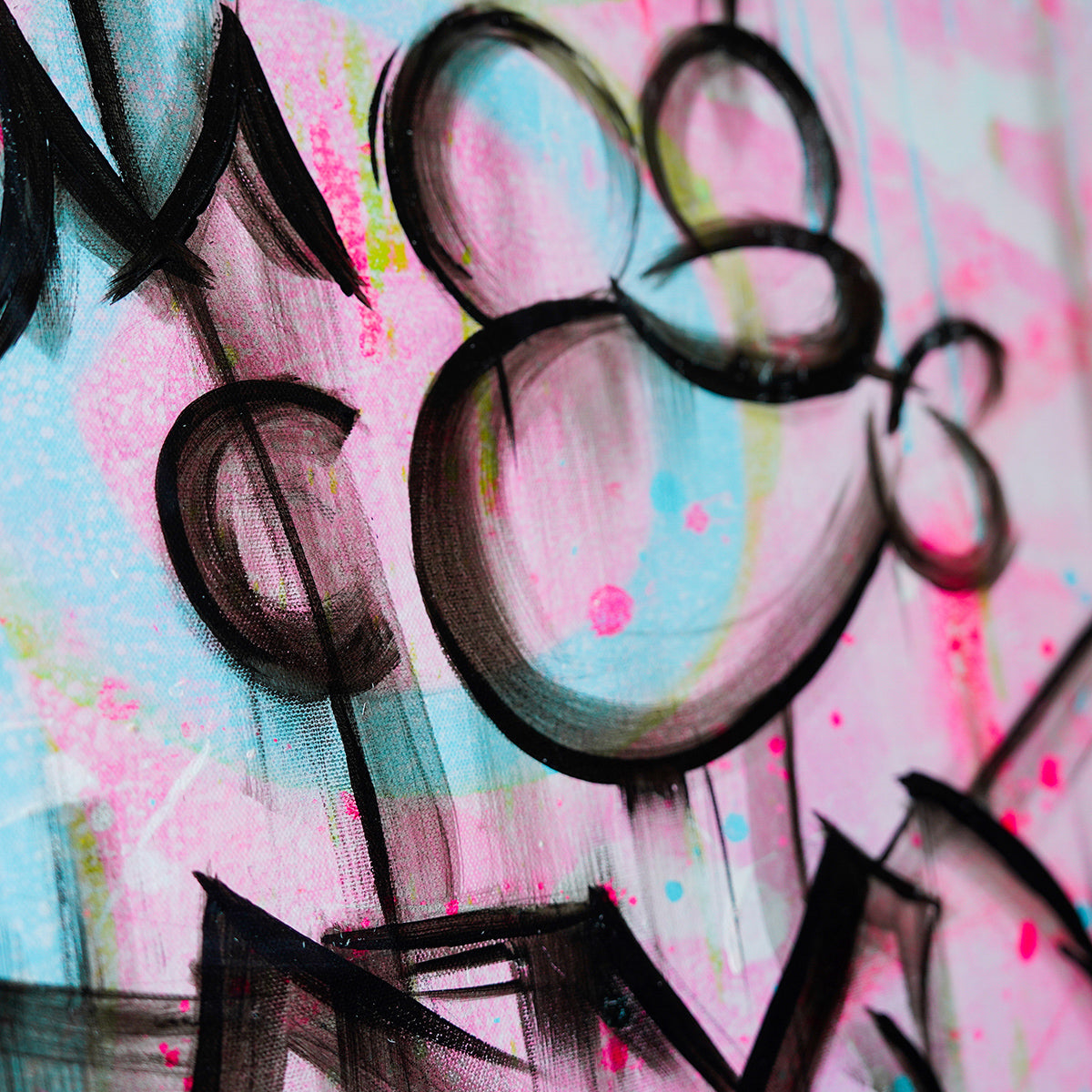This playful piece of art features Homer Simpson, the beloved character from The Simpsons, embodying pure joy with his arms raised high. Set against a vibrant pink background with bold black outlines, the artwork captures Homer’s cheerful, carefree energy. The contrast between the bright pink and sharp black lines adds a pop of excitement, while the simplicity of the design focuses on his joyful expression. Joyful Homer is a celebration of happiness and the fun moments that life brings