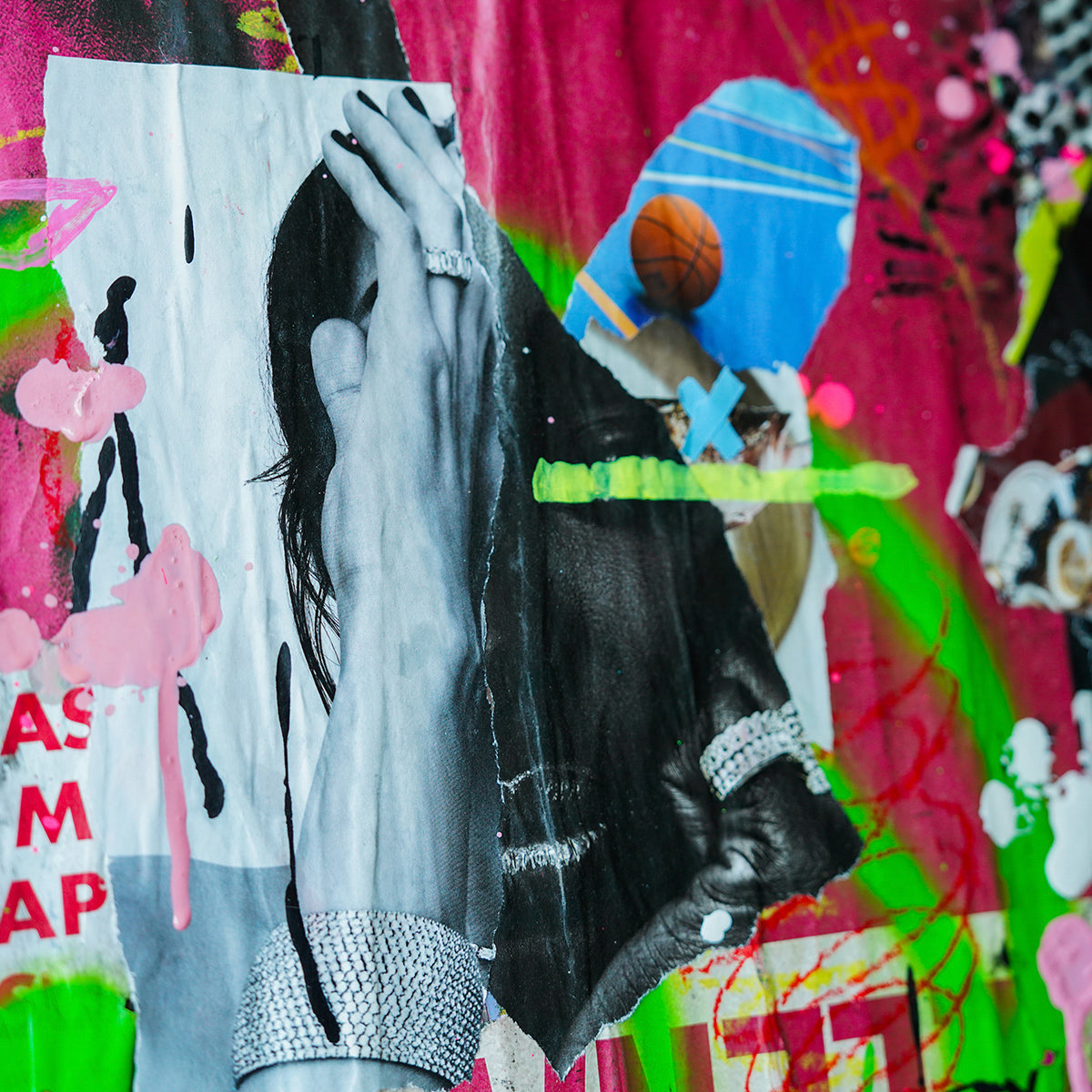 This artwork is a unique blend of street art and pop art, capturing the vibrant energy of Carrie Underwood. The piece incorporates real billboards taken from the streets, giving it an authentic urban feel. Layers of bold colors, dynamic textures, and iconic imagery merge to reflect the star’s powerful presence and pop-culture influence.