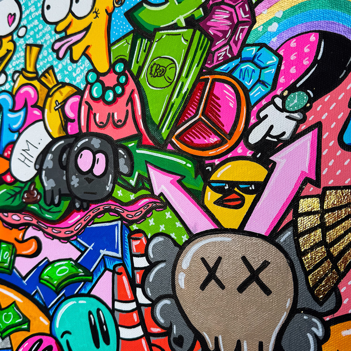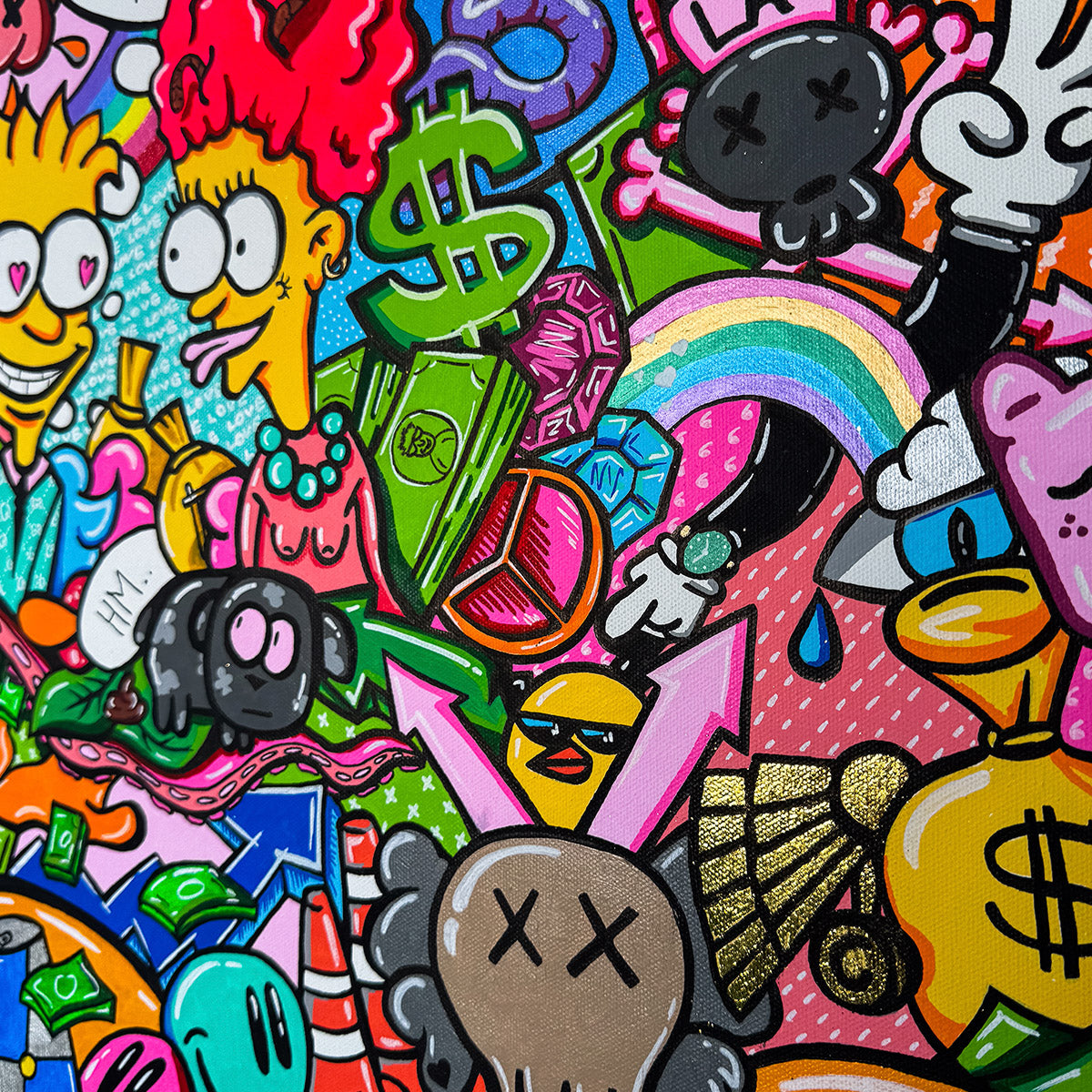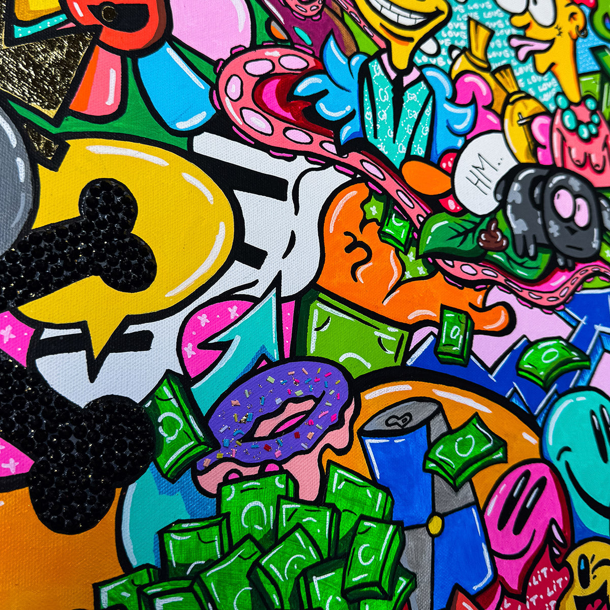 This provocative piece of art depicts a young man deeply infatuated with an older woman, drawn not by her age but by her drive and dedication to her work. His love transcends conventional boundaries, seeing only her ambition and strength. Meanwhile, a dog watches the scene with a humorous reaction, overwhelmed by the situation, even to the point of defecating. Surrounding them is an abundance of money, emphasizing the materialistic world in which their connection is set. Love Beyond Limits challenges societal norms, exploring themes of love, ambition, and the absurdity of a world ruled by wealth.
