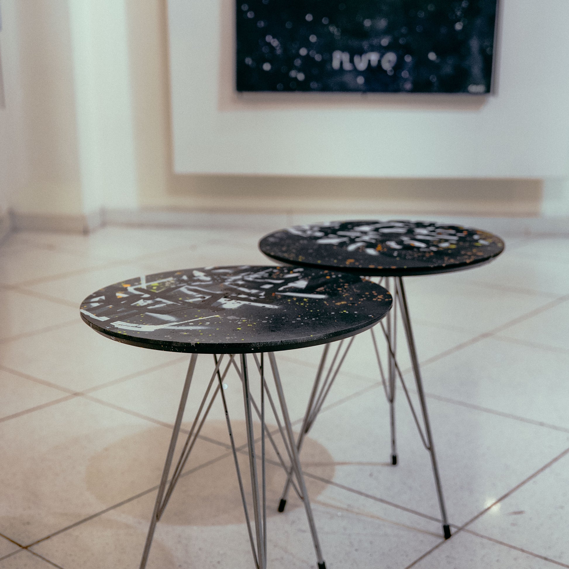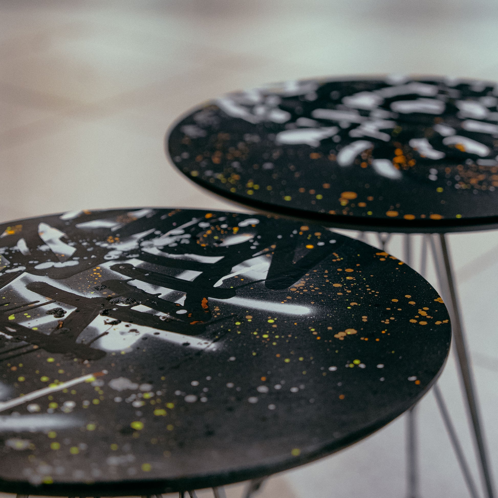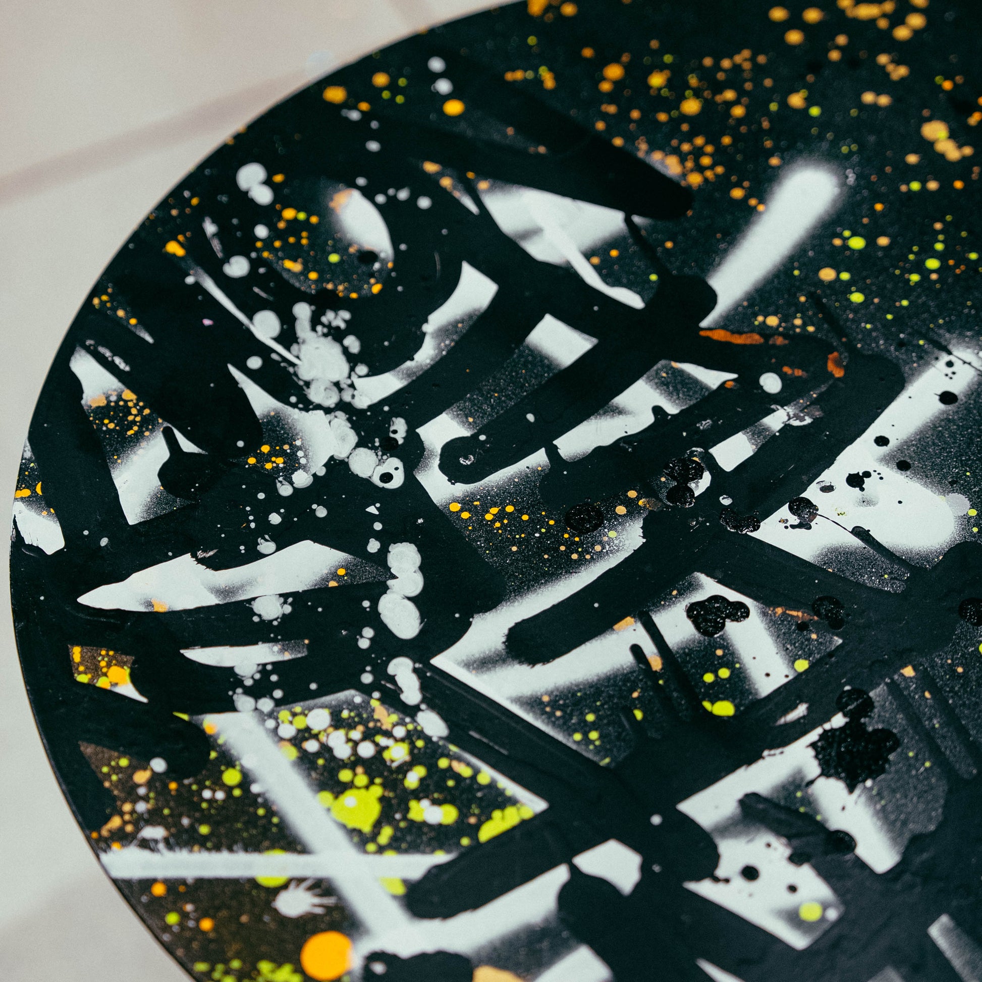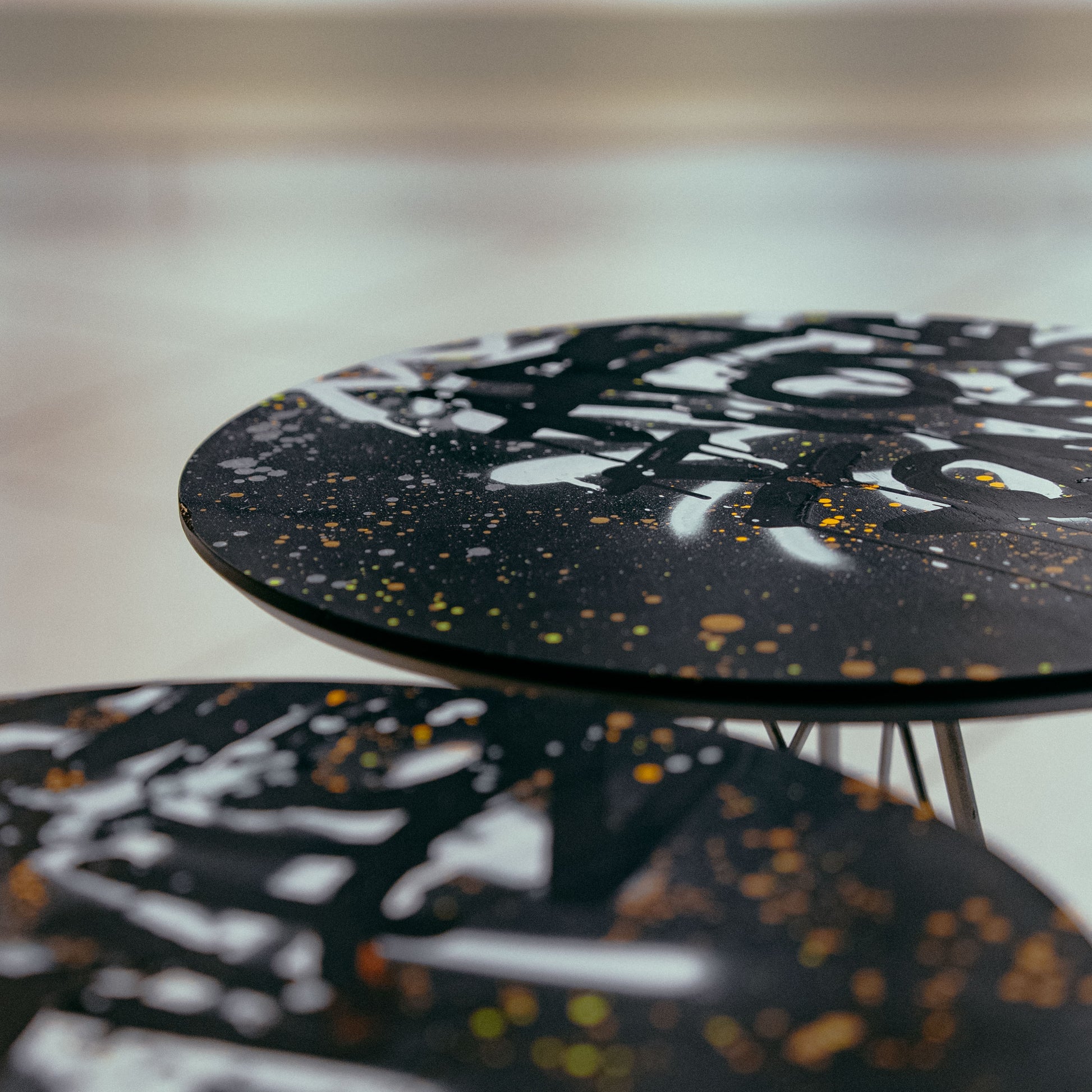 Each table is a one-of-a-kind canvas, hand-painted in a graffiti-inspired style. I use a mix of deep dark tones, gold, white, black, and gray — colors that reflect the streets, the city’s energy, and the contrasts of life.