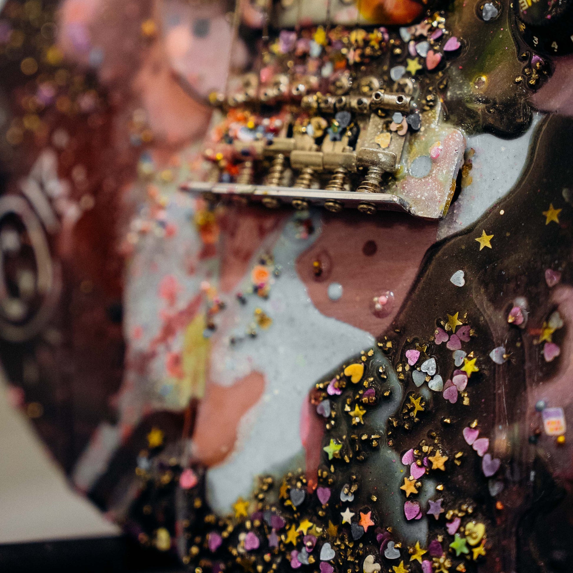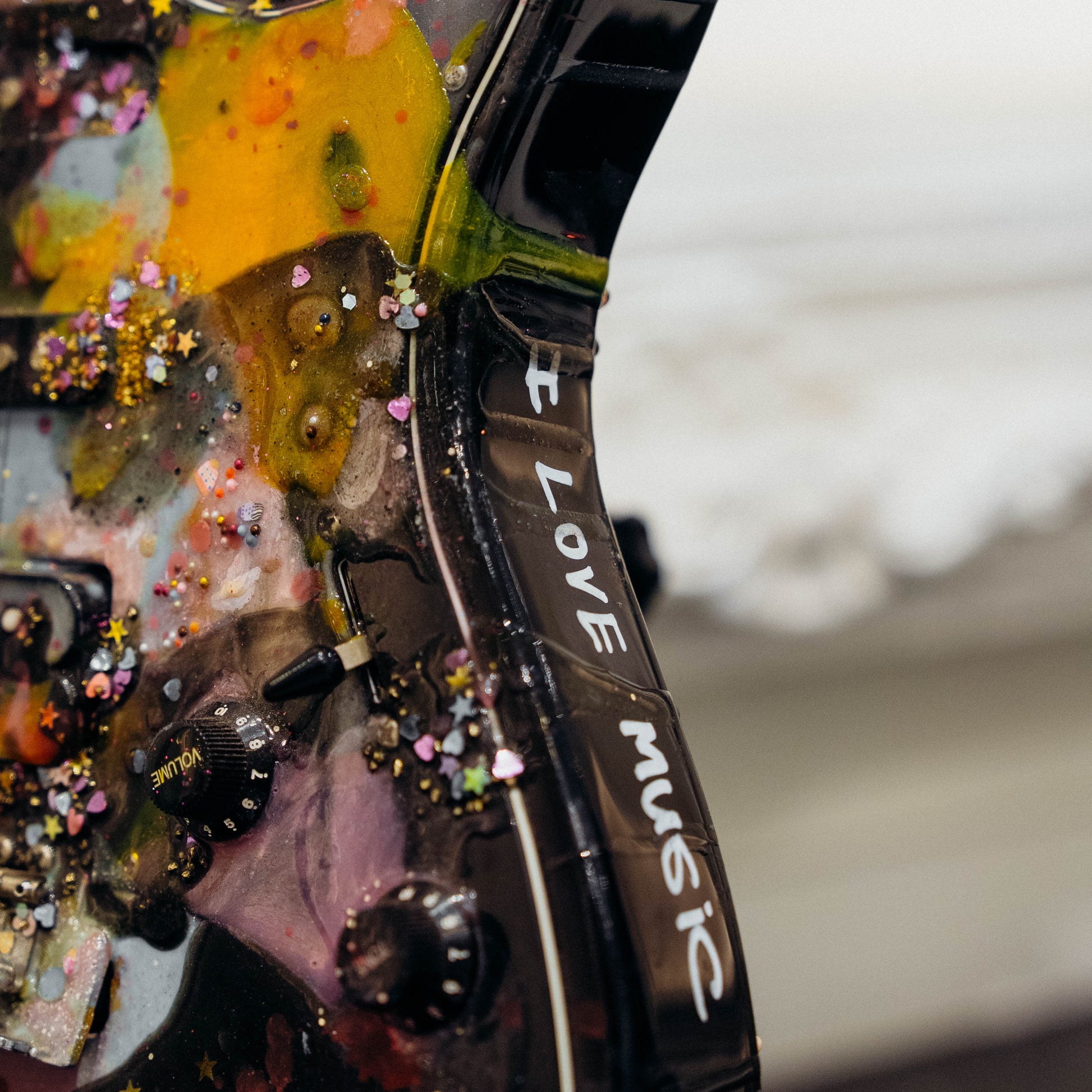 I found this guitar lying broken on a street corner on Melrose, right after a daytime shoot. It was cracked, split, and looked like it had been completely abandoned. But something about it spoke to me.
